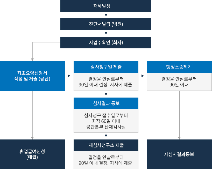 근로자와 사업주의 과실유무와 상관없이 업무상의 사유로 재해가 발생하면 근로자와 그 가족의 보호를 위하여 근로복지공단이 보상하여 주는 공적보험성격을 가진 보상제도입니다.